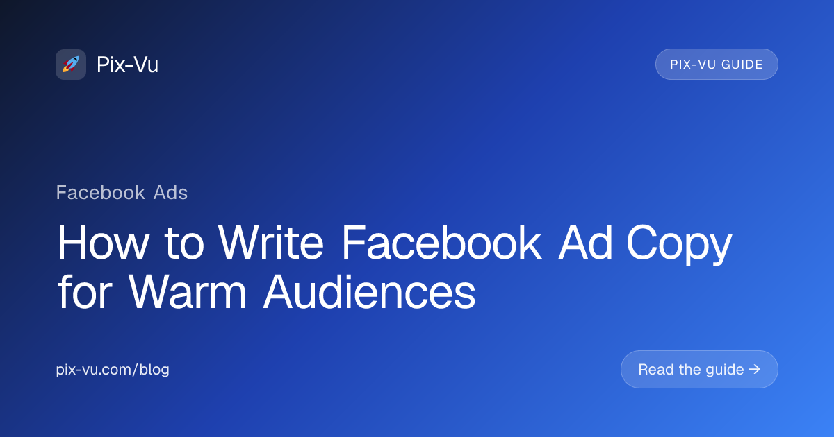 Warm audiences need fresh copy every 1-2 weeks to avoid fatigue. Pix-Vu automatically generates retargeting variations across your warm segments, so you stop running the same tired creative for months. Try it free.