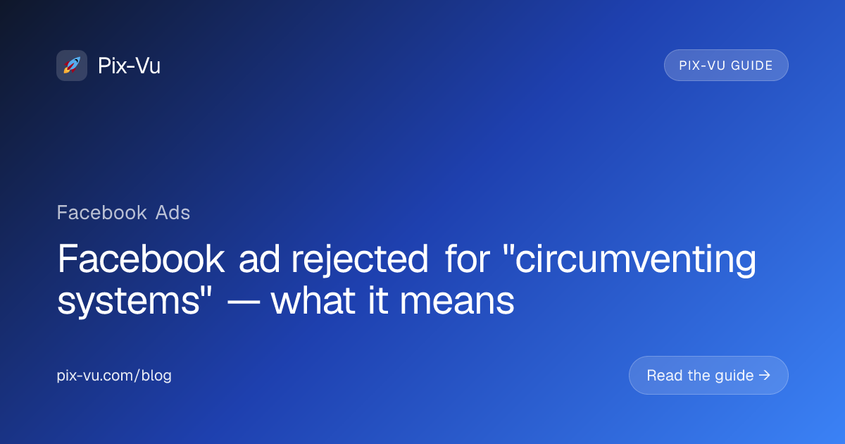 "Circumventing Systems" means Meta thinks you're trying to bypass its review process — usually because of a cloaked URL, redirect chain, or misleading landing page. Remove any redirects, point your ad directly to the final destination, and make sure the page Meta sees is the page users see.