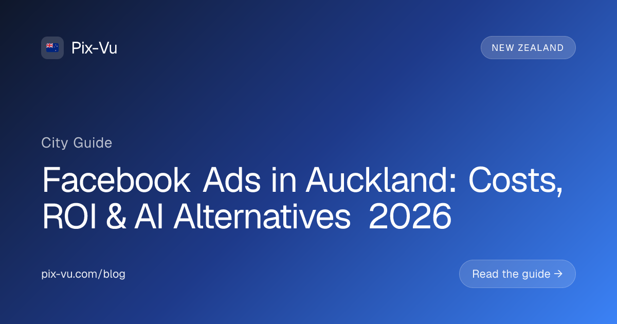 Facebook ads in Auckland cost an average of $11.20 CPM and $1.45 CPC in 2026, with a typical CTR of 1.08% and a cost per acquisition between $23-$92. Hiring a Facebook ads agency in Auckland runs $2,000-$7,500/month before ad spend, while AI-powered alternatives like Pix-Vu start at $49/month and manage the same campaigns automatically. For most Auckland businesses spending under $10K/month on ads, AI delivers better ROI than traditional agencies.