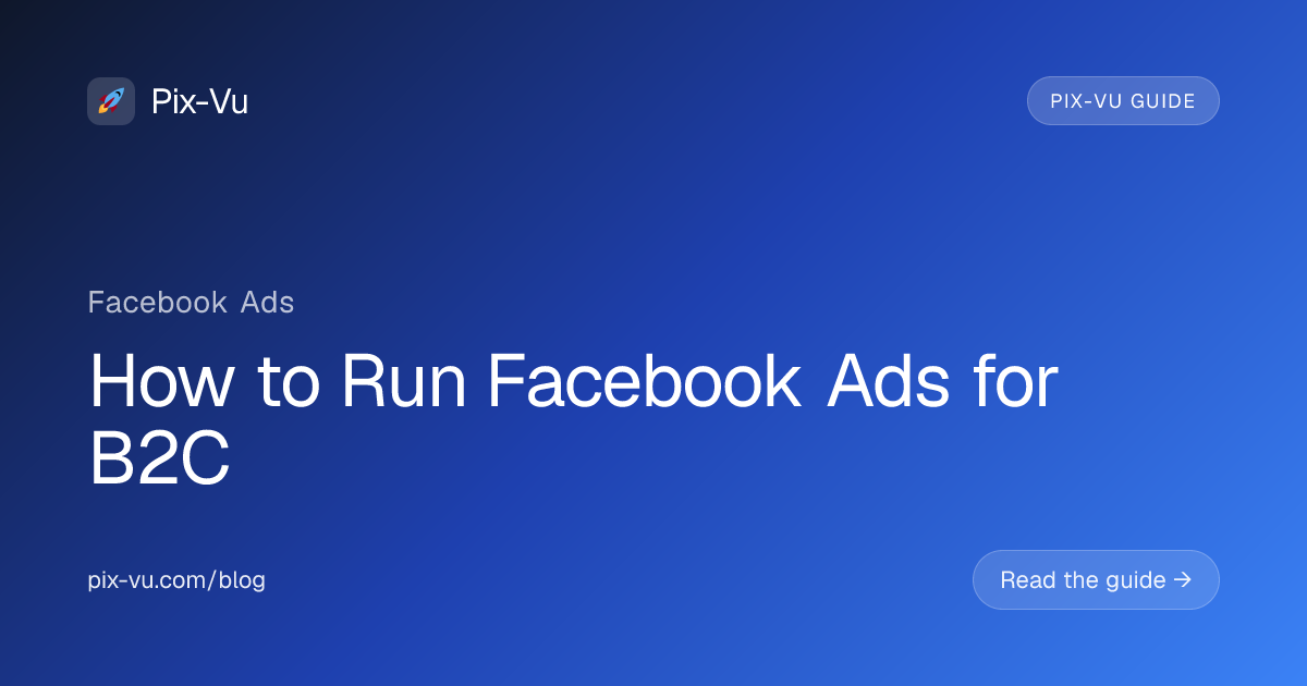 To run Facebook ads for B2C, use the Conversions or Sales objective optimised for Purchase, run native-feeling video creative (UGC, founder, product-in-use), and target lookalikes of paying customers plus broad interest stacks. Budget $50-300/day to start. Expect 2-5x ROAS for established brands and 1.5-3x ROAS in the first 30-90 days while the algorithm learns.