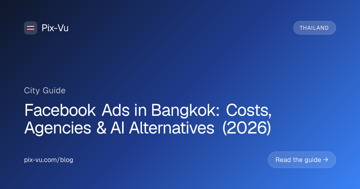 Running Facebook ads in Bangkok in 2026 is competitive and expensive. This guide gives you direct answers on costs, what local agencies charge, and how Pix-Vu's AI ad management replaces both for $99 per month.