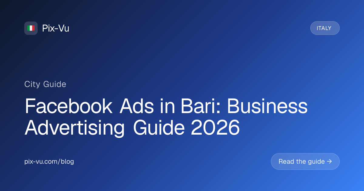Most Bari advertisers either underspend (assuming Facebook is "expensive") or overspend (targeting the whole city instead of the right neighbourhoods). This guide covers what Facebook ads really cost in Bari in 2026 and how to plan a budget that produces results.
