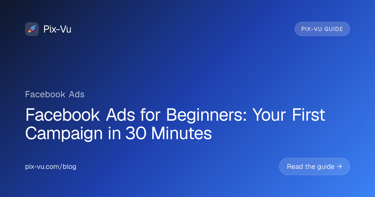 If you've never run a Facebook ad before, the Ads Manager interface can feel like the cockpit of a 747 — a thousand buttons, half of them in jargon, and you're not sure which one is the throttle. The good news is that 90% of those buttons don't matter for your first campaign. This guide will get you live in roughly 30 minutes.