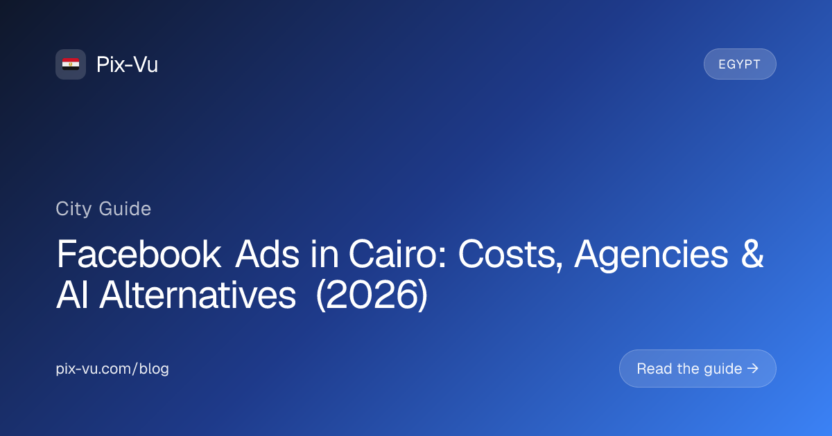 Running Facebook ads in Cairo in 2026 is competitive and expensive. This guide gives you direct answers on costs, what local agencies charge, and how Pix-Vu's AI ad management replaces both for $99 per month.