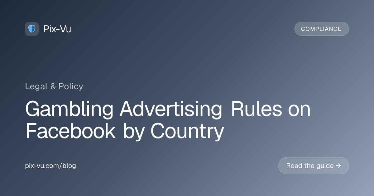 Licensed gambling operators use Pix-Vu to mock and pre-clear Facebook creative for UKGC, MGA, ANJ and US state regulators — all without firing the Pixel or burning ad accounts on rejected creative. https://pix-vu.com.