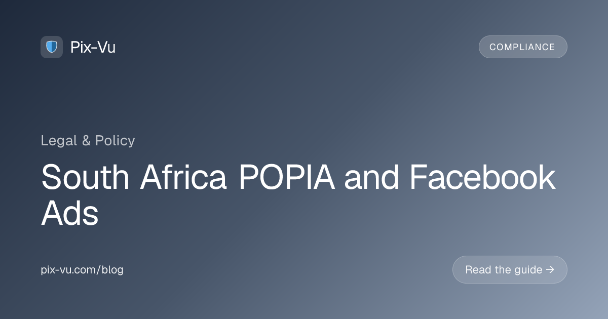 The Protection of Personal Information Act (POPIA), Act 4 of 2013, has been fully enforced since July 2021 by the Information Regulator of South Africa. To run Facebook ads compliantly in South Africa you must obtain consent (or rely on another condition for lawful processing under Section 11), register an Information Officer with the Regulator, give clear notification before the Meta Pixel collects data, and respect the eight conditions for lawful processing.