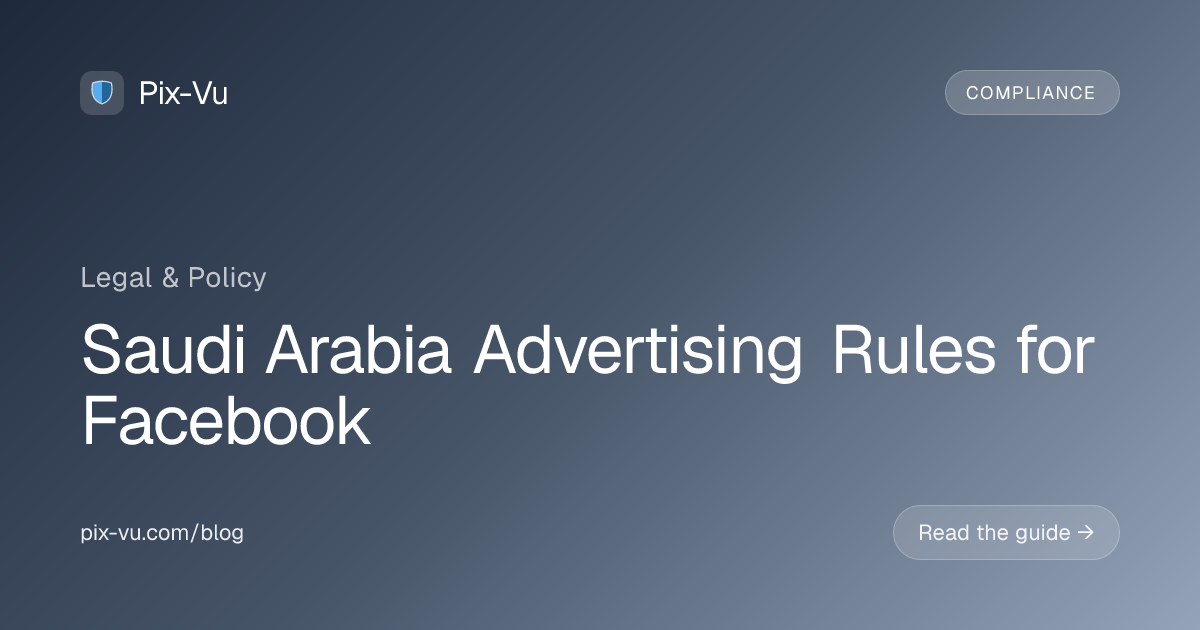 Saudi Arabia regulates Facebook advertising through three layers: the Personal Data Protection Law 2021 enforced by SDAIA, the General Authority for Media Regulation (GAMR) advertising rules, and the Communications, Space and Technology Commission (CST). All three apply simultaneously. Ads must respect Sharia principles, avoid prohibited content, obtain consent for personal data processing, and follow Arabic-language disclosure rules.