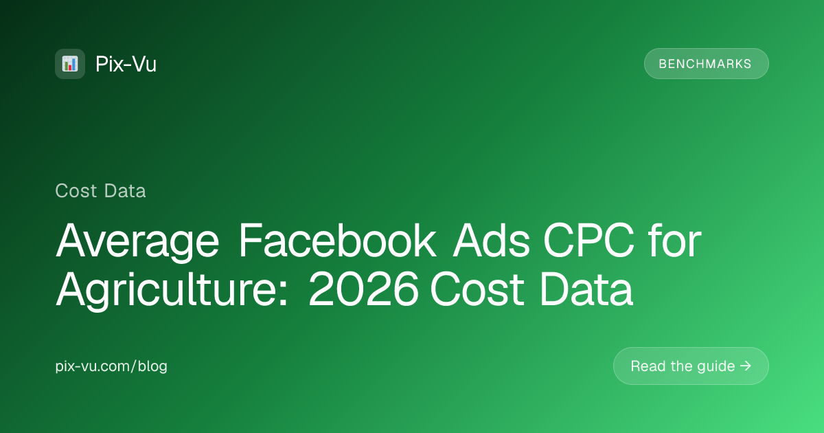 The average Facebook Ads CPC for agriculture in 2026 is $1.00, with most accounts running between $0.50 - $1.50 depending on geography, creative quality, and audience targeting. Top-decile advertisers in this vertical run as low as $0.40 CPC; underperforming accounts often see $1.60 or higher.