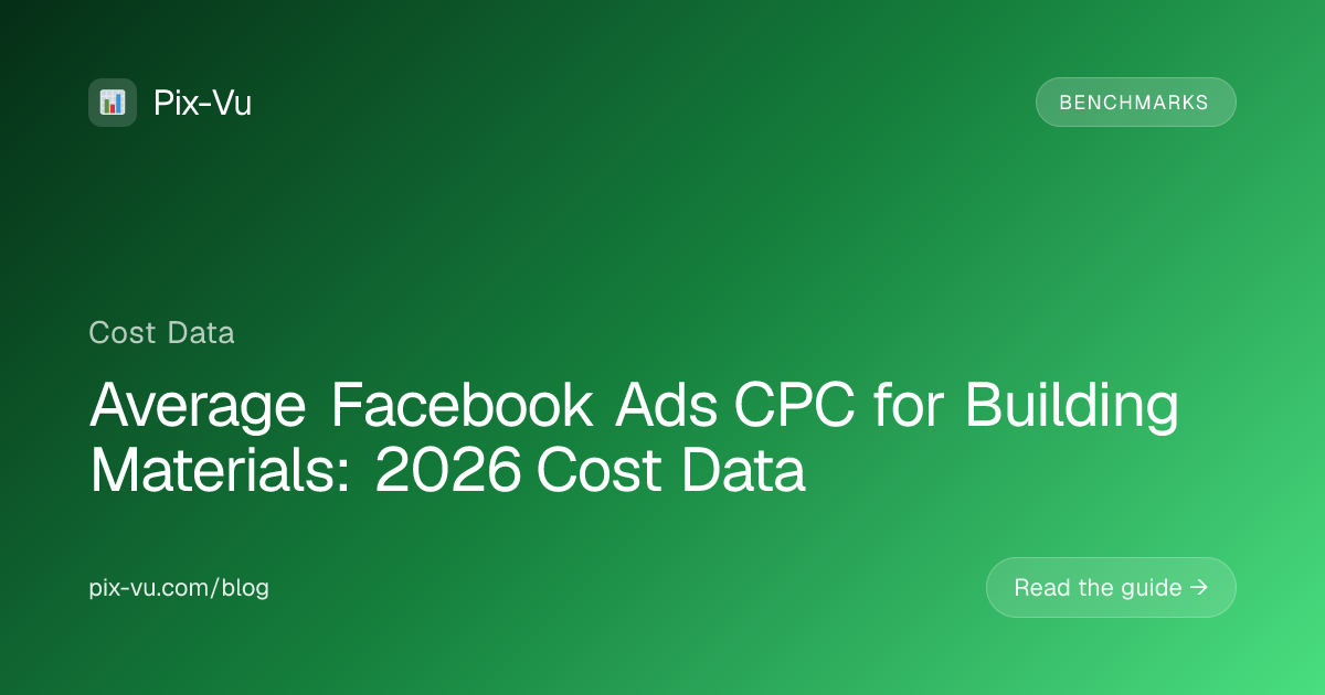 The average Facebook Ads CPC for building materials in 2026 is $1.40, with most accounts running between $0.75 - $2.00 depending on geography, creative quality, and audience targeting. Top-decile advertisers in this vertical run as low as $0.60 CPC; underperforming accounts often see $2.20 or higher.