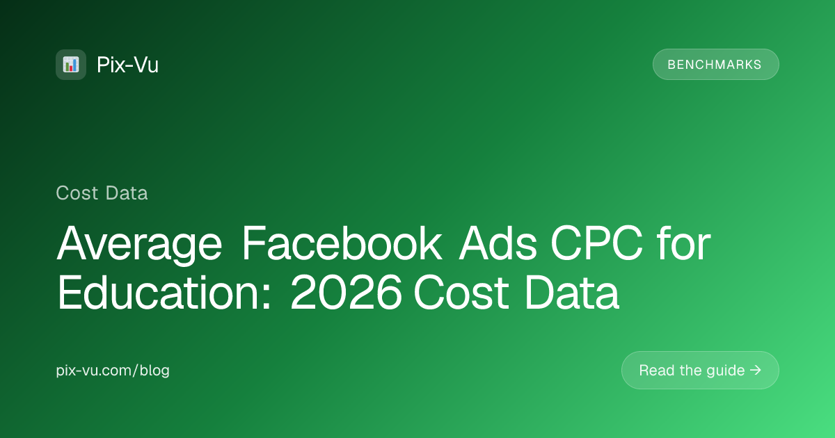 The average Facebook Ads CPC for education in 2026 is $1.55, with most accounts running between $0.85 - $2.30 depending on geography, creative quality, and audience targeting. Top-decile advertisers in this vertical run as low as $0.65 CPC; underperforming accounts often see $2.40 or higher.