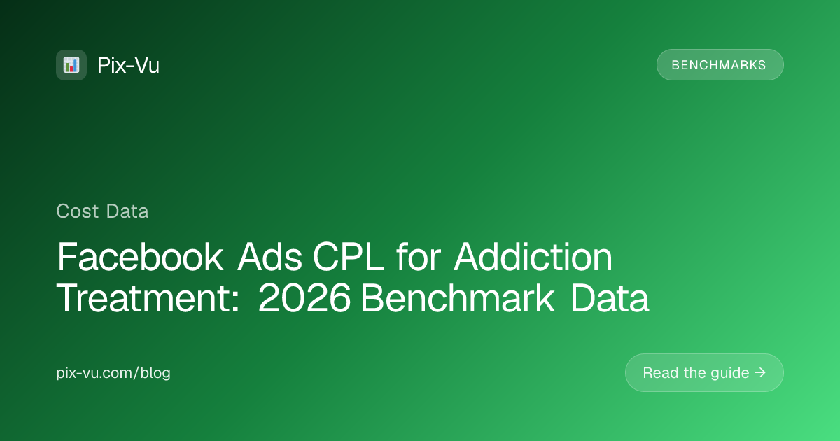 Benchmarks are useful, but the only CPL that matters is the one in your own account. Pix-Vu gives addiction treatment businesses a clean, single-dashboard view of Facebook Ads spend, lead volume, and cost per lead — without the spreadsheet wrangling. You'll see which campaigns are coming in below the benchmarks above and which are quietly draining budget, so you can shift spend before the month ends instead of after. Try Pix-Vu free at https://pix-vu.com.