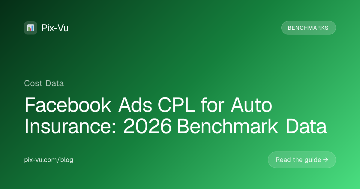 Benchmarks are useful, but the only CPL that matters is the one in your own account. Pix-Vu gives auto insurance businesses a clean, single-dashboard view of Facebook Ads spend, lead volume, and cost per lead — without the spreadsheet wrangling. You'll see which campaigns are coming in below the benchmarks above and which are quietly draining budget, so you can shift spend before the month ends instead of after. Try Pix-Vu free at https://pix-vu.com.