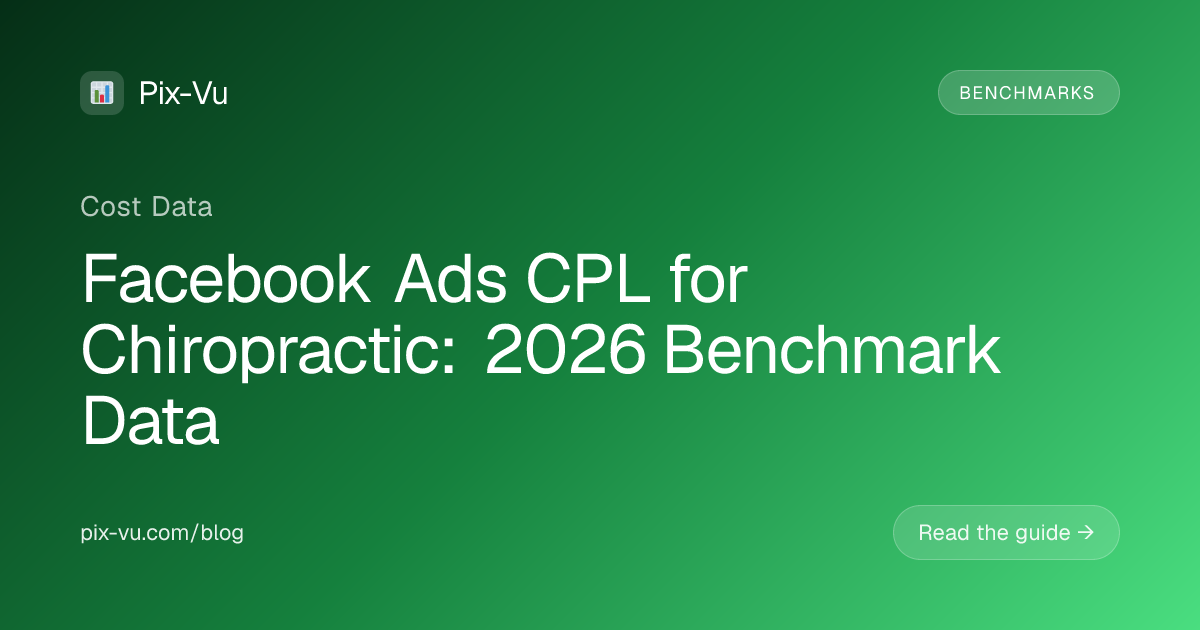 Benchmarks are useful, but the only CPL that matters is the one in your own account. Pix-Vu gives chiropractic businesses a clean, single-dashboard view of Facebook Ads spend, lead volume, and cost per lead — without the spreadsheet wrangling. You'll see which campaigns are coming in below the benchmarks above and which are quietly draining budget, so you can shift spend before the month ends instead of after. Try Pix-Vu free at https://pix-vu.com.