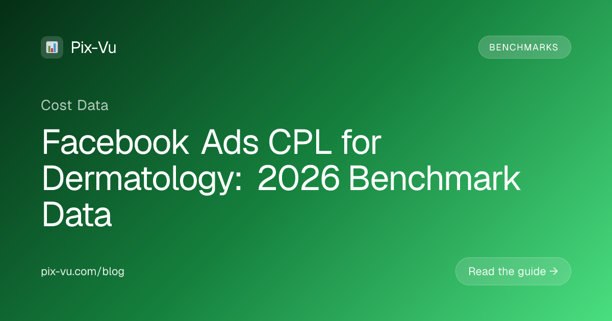 Benchmarks are useful, but the only CPL that matters is the one in your own account. Pix-Vu gives dermatology businesses a clean, single-dashboard view of Facebook Ads spend, lead volume, and cost per lead — without the spreadsheet wrangling. You'll see which campaigns are coming in below the benchmarks above and which are quietly draining budget, so you can shift spend before the month ends instead of after. Try Pix-Vu free at https://pix-vu.com.