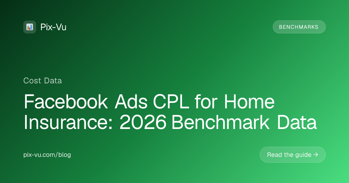 Benchmarks are useful, but the only CPL that matters is the one in your own account. Pix-Vu gives home insurance businesses a clean, single-dashboard view of Facebook Ads spend, lead volume, and cost per lead — without the spreadsheet wrangling. You'll see which campaigns are coming in below the benchmarks above and which are quietly draining budget, so you can shift spend before the month ends instead of after. Try Pix-Vu free at https://pix-vu.com.