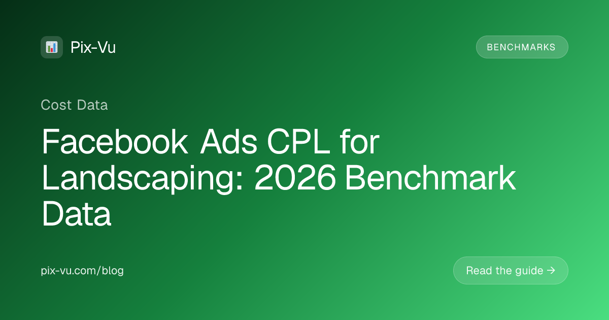 Benchmarks are useful, but the only CPL that matters is the one in your own account. Pix-Vu gives landscaping businesses a clean, single-dashboard view of Facebook Ads spend, lead volume, and cost per lead — without the spreadsheet wrangling. You'll see which campaigns are coming in below the benchmarks above and which are quietly draining budget, so you can shift spend before the month ends instead of after. Try Pix-Vu free at https://pix-vu.com.