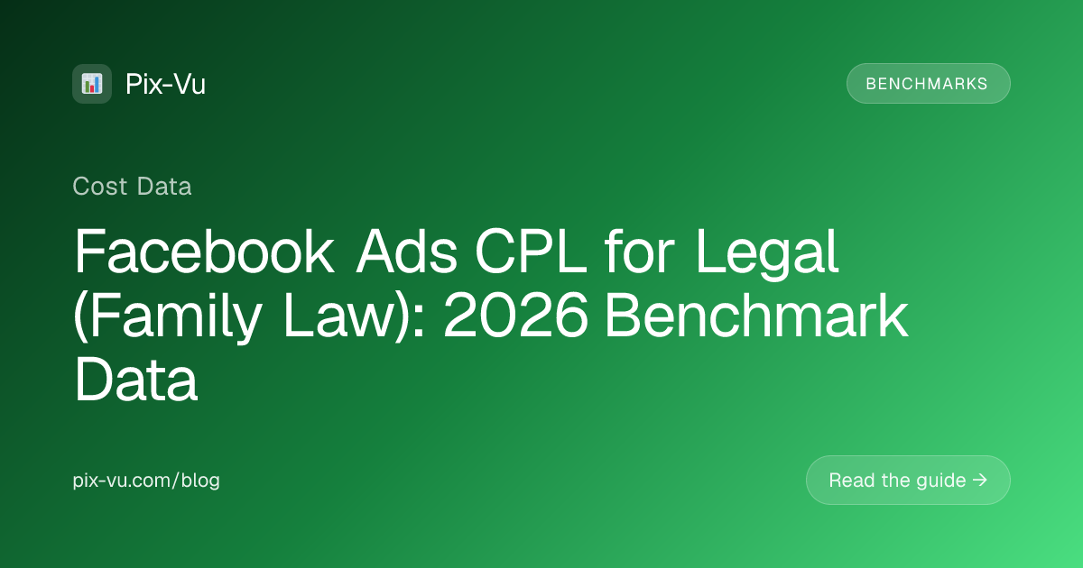 Benchmarks are useful, but the only CPL that matters is the one in your own account. Pix-Vu gives legal (family law) businesses a clean, single-dashboard view of Facebook Ads spend, lead volume, and cost per lead — without the spreadsheet wrangling. You'll see which campaigns are coming in below the benchmarks above and which are quietly draining budget, so you can shift spend before the month ends instead of after. Try Pix-Vu free at https://pix-vu.com.