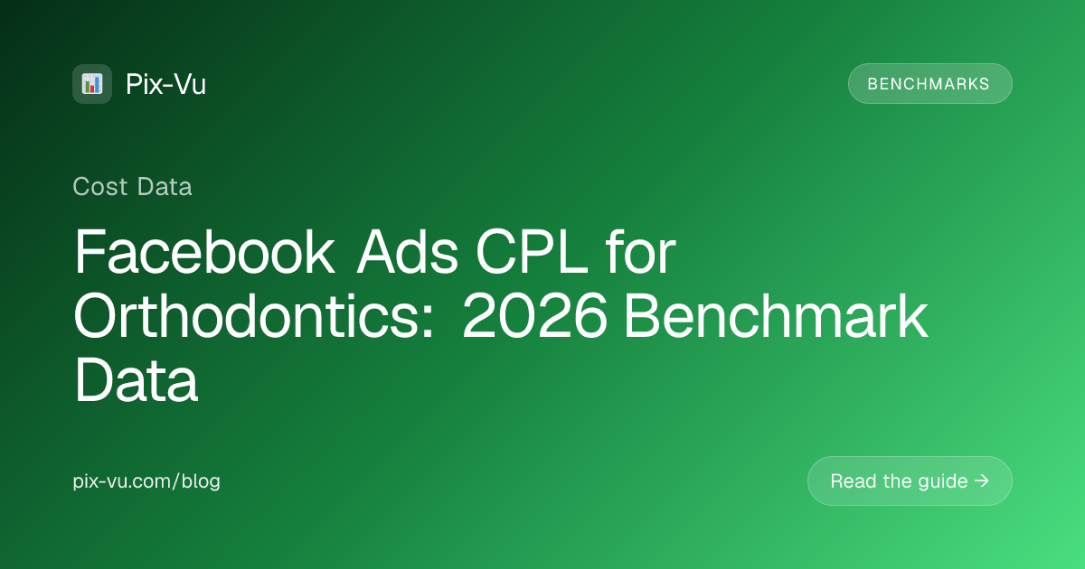 Benchmarks are useful, but the only CPL that matters is the one in your own account. Pix-Vu gives orthodontics businesses a clean, single-dashboard view of Facebook Ads spend, lead volume, and cost per lead — without the spreadsheet wrangling. You'll see which campaigns are coming in below the benchmarks above and which are quietly draining budget, so you can shift spend before the month ends instead of after. Try Pix-Vu free at https://pix-vu.com.