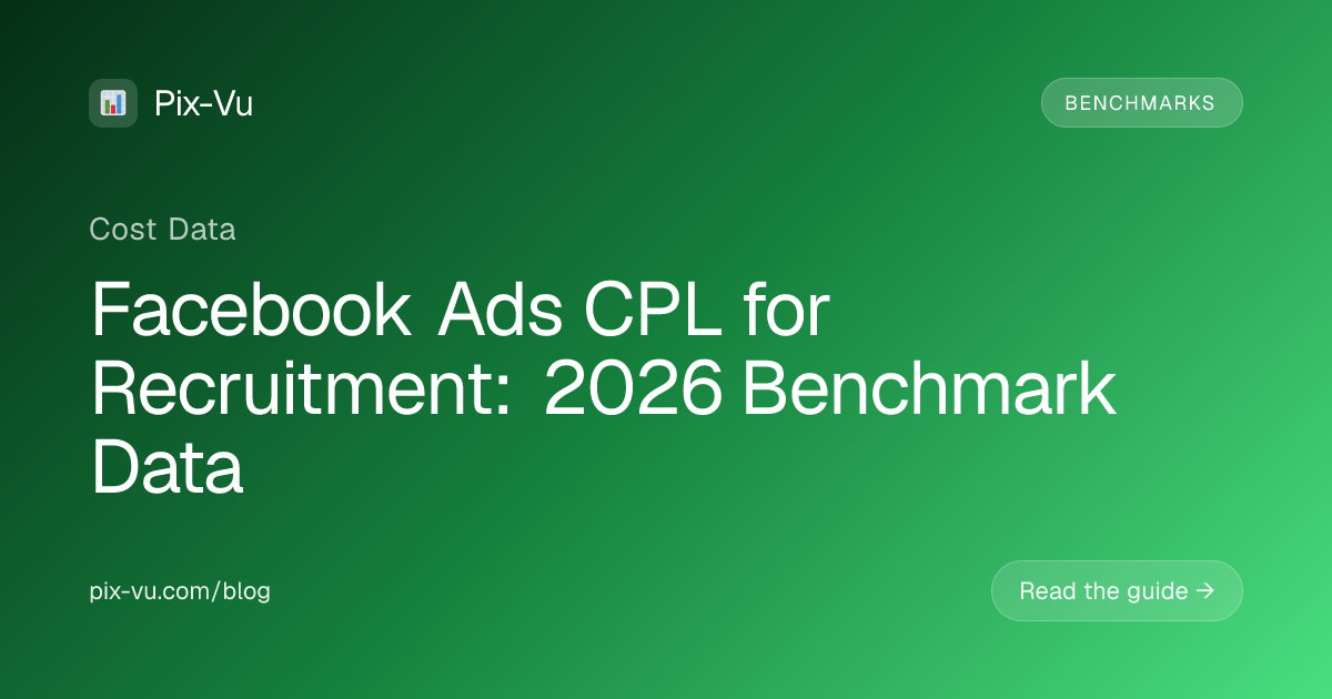 Benchmarks are useful, but the only CPL that matters is the one in your own account. Pix-Vu gives recruitment businesses a clean, single-dashboard view of Facebook Ads spend, lead volume, and cost per lead — without the spreadsheet wrangling. You'll see which campaigns are coming in below the benchmarks above and which are quietly draining budget, so you can shift spend before the month ends instead of after. Try Pix-Vu free at https://pix-vu.com.