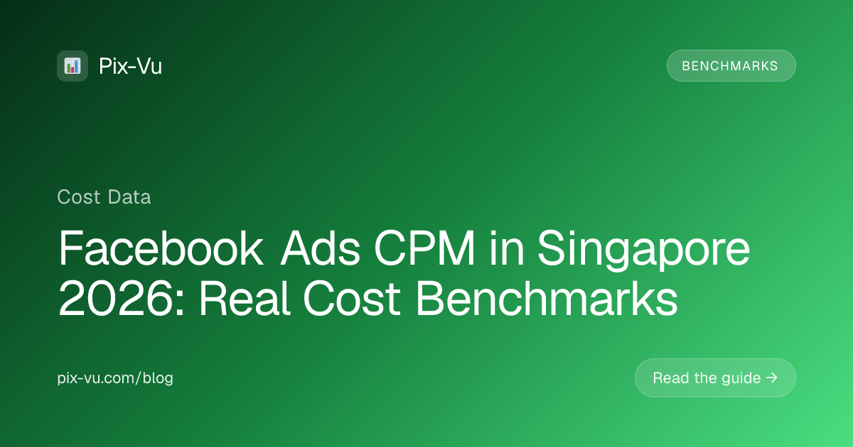 Benchmarks reflect blended 2026 Meta auction data observed across feed, Reels, Stories and in-stream placements in Singapore. Your account's actual CPMs will vary based on audience definition, bid strategy, creative quality and conversion event setup. Treat these numbers as planning ranges, not guarantees.