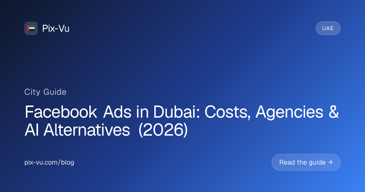 Running Facebook ads in Dubai in 2026 is competitive and expensive. This guide gives you direct answers on costs, what local agencies charge, and how Pix-Vu's AI ad management replaces both for $99 per month.