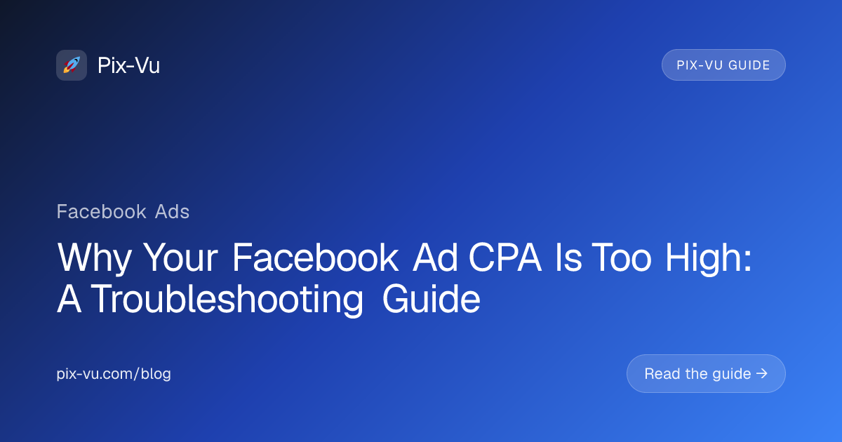 If you're spending hours each week troubleshooting CPA and chasing the wrong fixes, Pix-Vu automatically diagnoses the bottleneck in your funnel — telling you exactly which lever (creative, audience, bidding, or landing page) needs work — so you can fix the right thing the first time.