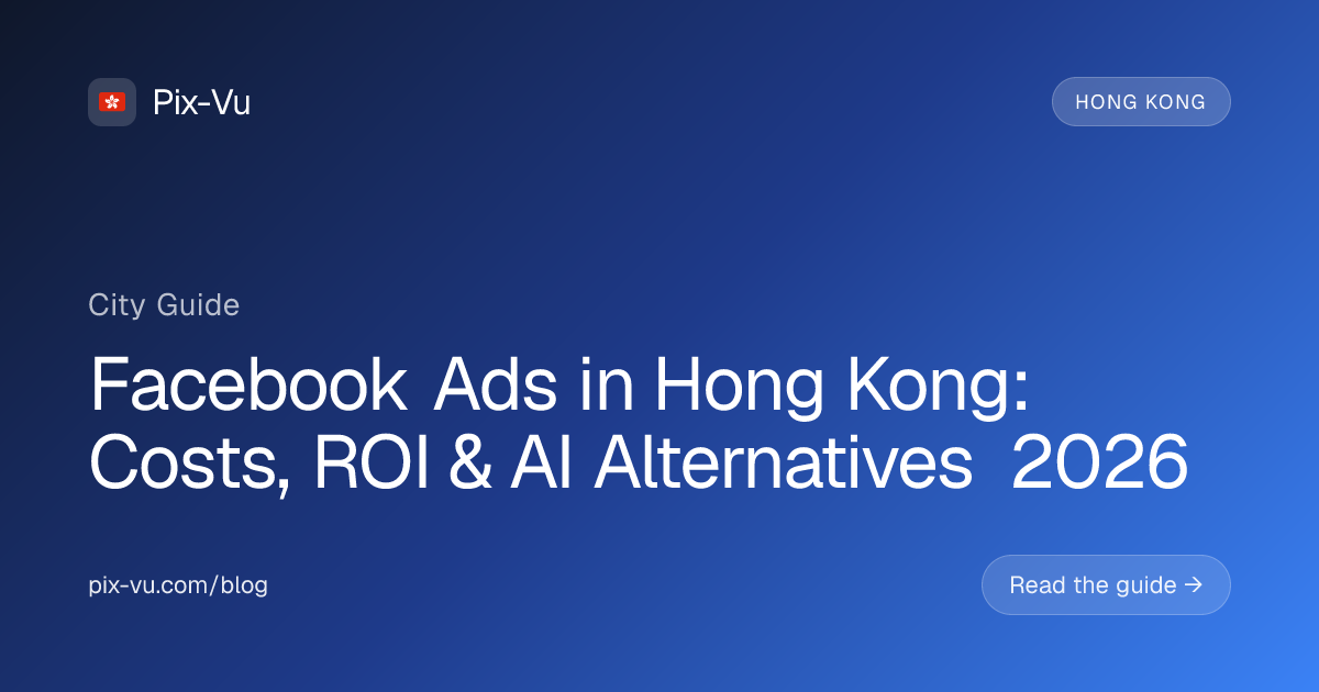 Facebook ads in Hong Kong cost an average of $14.20 CPM and $1.85 CPC in 2026, with a typical CTR of 0.95% and a cost per acquisition between $28-$95. Hiring a Facebook ads agency in Hong Kong runs $2,500-$8,000/month before ad spend, while AI-powered alternatives like Pix-Vu start at $49/month and manage the same campaigns automatically. For most Hong Kong businesses spending under $10K/month on ads, AI delivers better ROI than traditional agencies.
