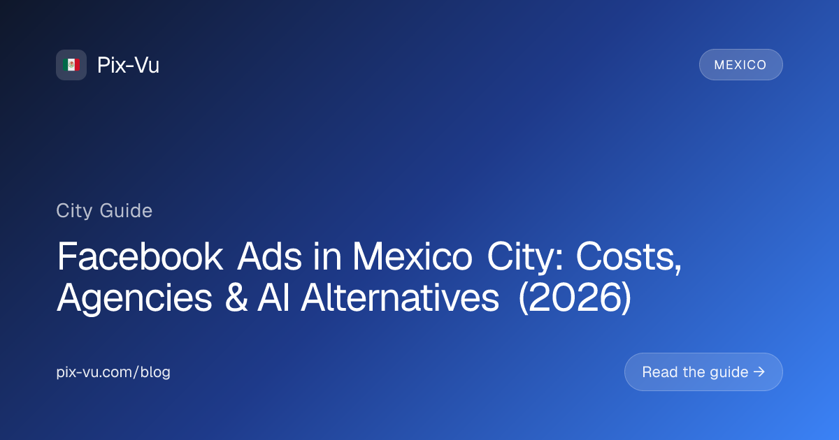 Running Facebook ads in Mexico City in 2026 is competitive and expensive. This guide gives you direct answers on costs, what local agencies charge, and how Pix-Vu's AI ad management replaces both for $99 per month.