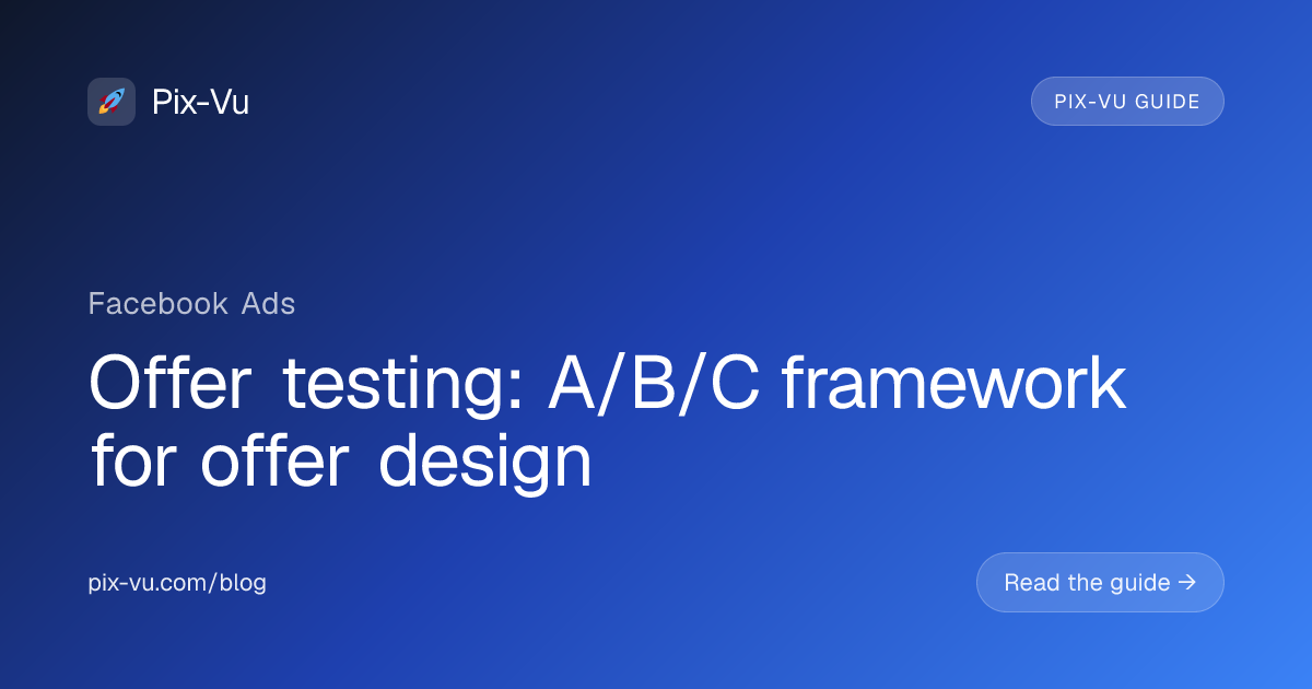Pix-Vu generates and tests Facebook ad creative variations against your offer in minutes — not weeks. Upload your product, paste your offer, and get headlines, primary text, and visual variations engineered around proven offer psychology. See it in action at pix-vu.com.