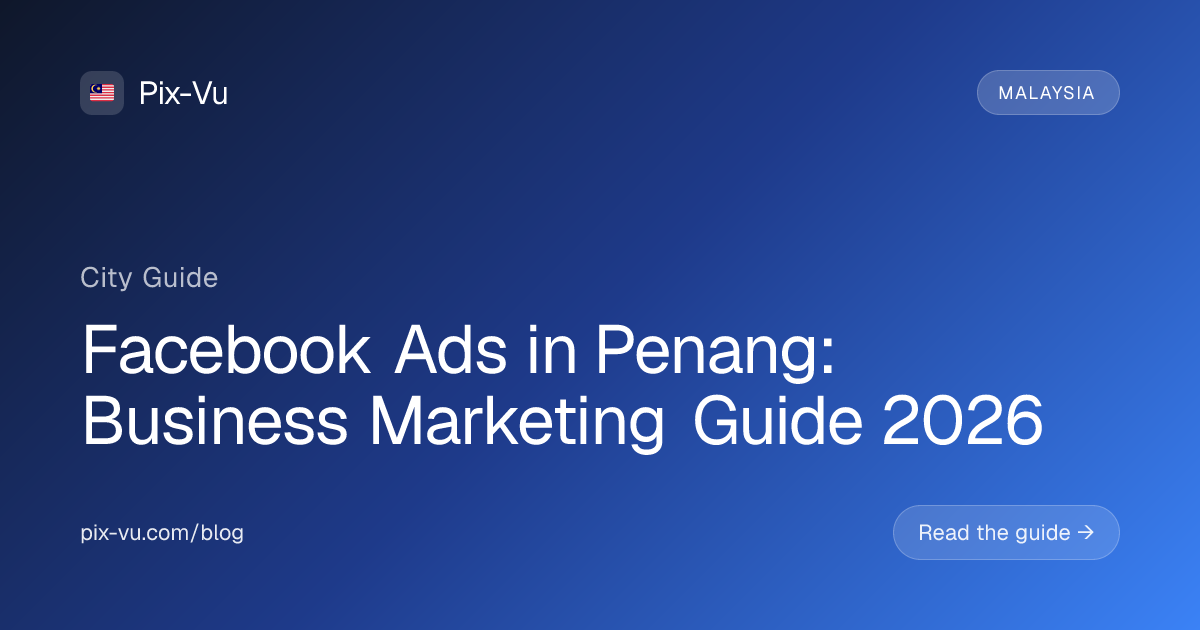 If you're running a business in Penang and want to launch Facebook Ads without hiring an agency or learning Meta Ads Manager, start your Pix-Vu trial for $99/month. Setup takes 5 minutes. The AI handles creative, targeting, and 24/7 optimisation. 30-day money-back guarantee.