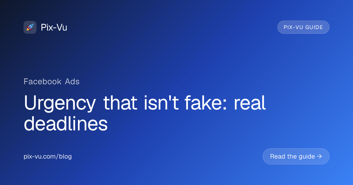 Most urgency in Facebook ads is fake — the same countdown timer reset every visit, the same 'last chance' email sent every week. Real urgency is rarer and far more powerful. Real deadlines come from genuine constraints: cohort start dates, inventory limits, end-of-quarter pricing, seasonal product cycles. They convert better because savvy buyers can spot the difference, and trust is the asset.The psychology