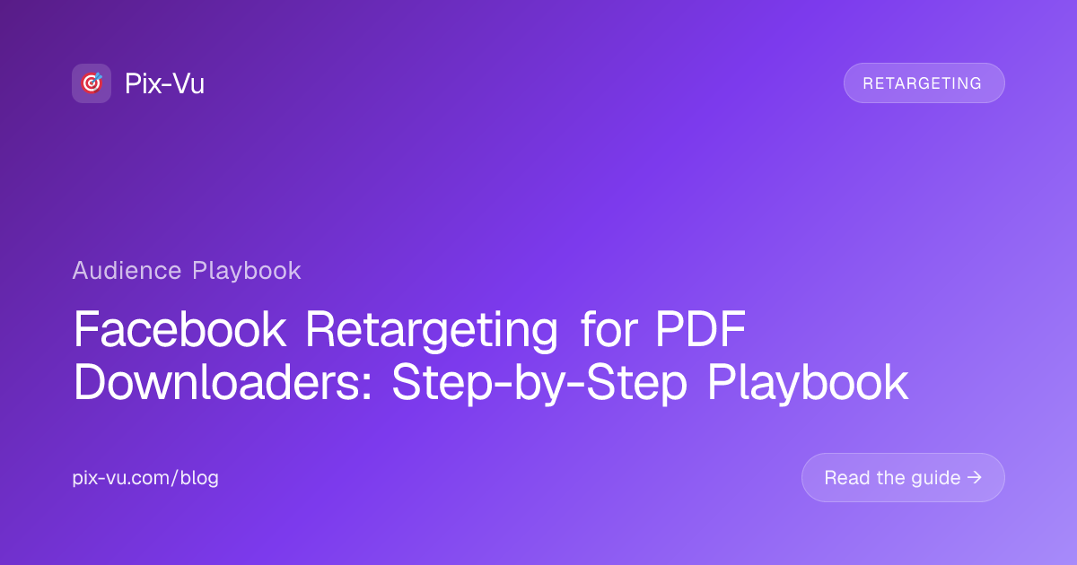 Fire a custom Pixel event when the PDF download is triggered (not just when the form is submitted, but when the file actually downloads). Build a website custom audience from that event. Segment by topic if your library has multiple PDFs — a buyer's guide downloader has different intent from a checklist downloader.