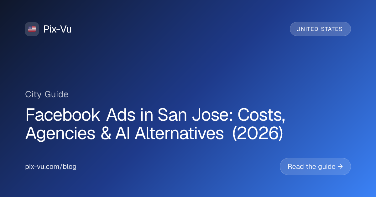 If you run a business in San Jose and you have considered Facebook or Instagram ads, the platform feels overwhelming and agency quotes are eye-watering. This guide gives you current 2026 cost benchmarks for the San Jose market, the going rates Silicon Valley / Bay Area agencies charge, the trade-offs between agency, DIY and AI tools, and a plain-English FAQ.