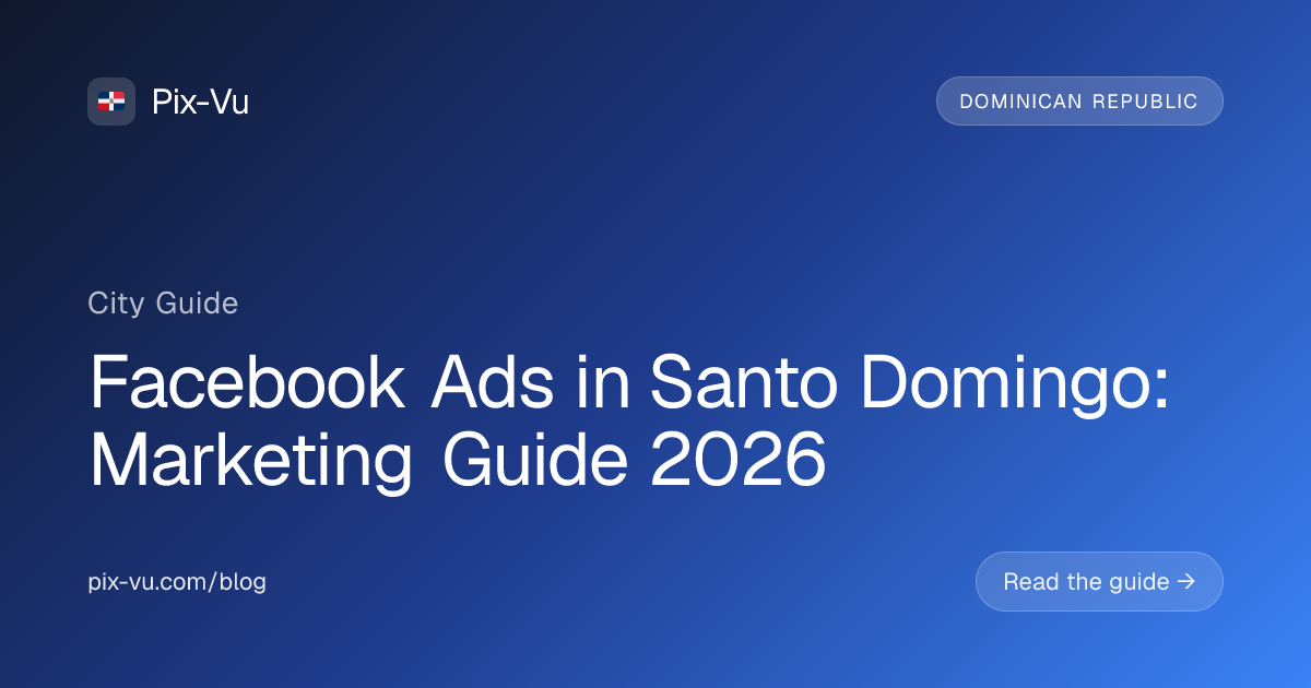Running Facebook ads in Santo Domingo demands constant attention. Tools like Pix-Vu use AI to generate creative, optimise targeting, and reallocate budget automatically — so you can grow your business instead of wrestling with Ads Manager. Santo Domingo rewards local relevance and consistent iteration. Get your targeting tight, lean into neighborhood signals, and give the algorithm the budget to learn.