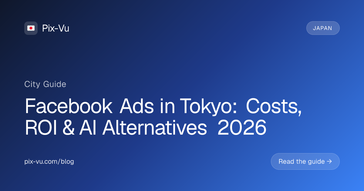 Facebook ads in Tokyo cost an average of $11.20 CPM and $1.45 CPC in 2026, with a typical CTR of 1% and a cost per acquisition between $26-$110. Hiring a Facebook ads agency in Tokyo runs $2,200-$9,000/month before ad spend, while AI-powered alternatives like Pix-Vu start at $49/month and manage the same campaigns automatically. For most Tokyo businesses spending under $10K/month on ads, AI delivers better ROI than traditional agencies.