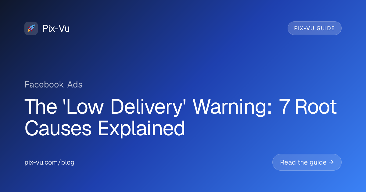 The low delivery warning has seven distinct root causes: insufficient bid, exhausted audience, account-level pacing limits, ad disapproval at scale, payment failures, scheduled downtime, and creative-level quality penalties. Each requires a different fix and you have to identify which one applies before changing anything — random adjustments make it worse.